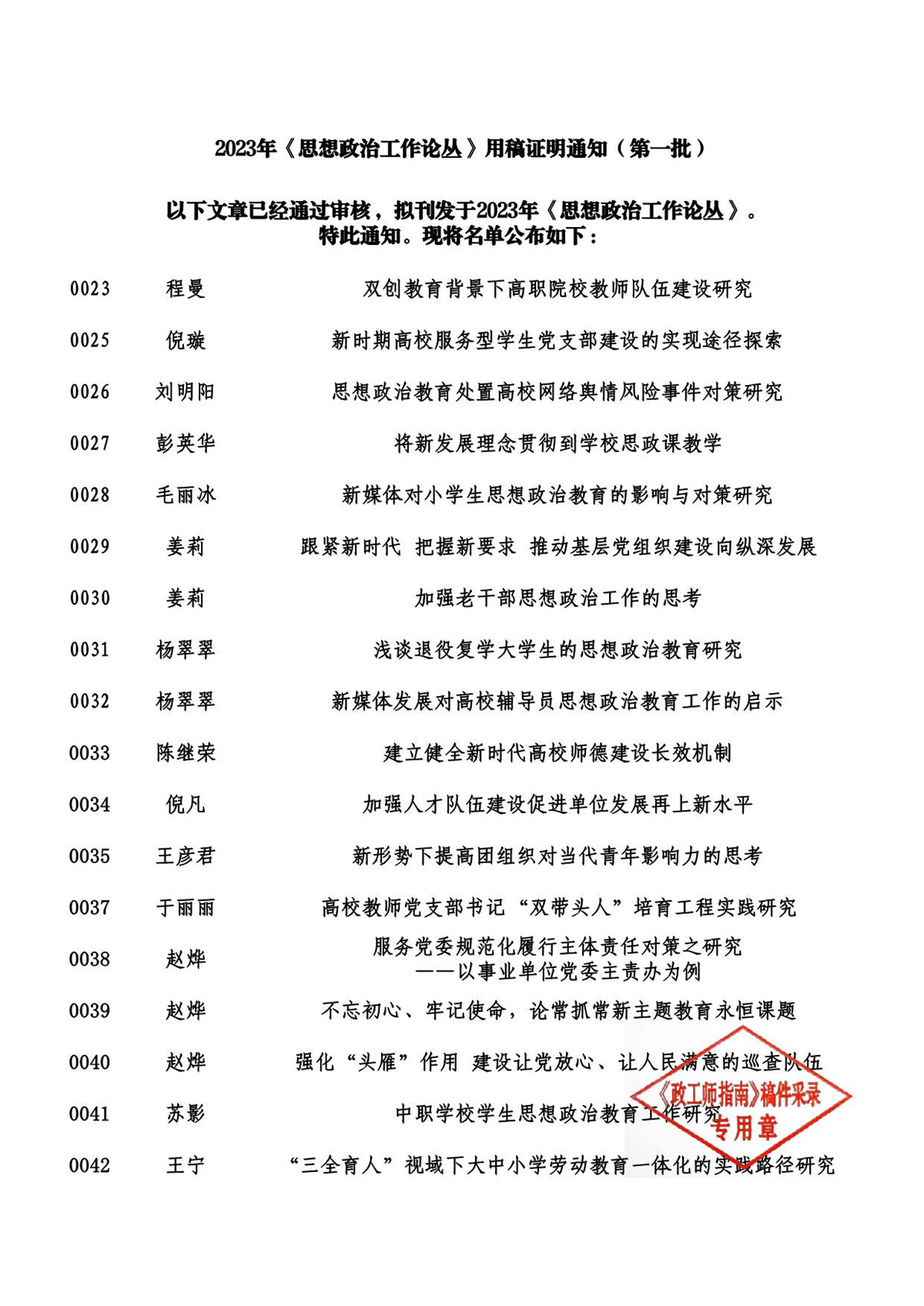 2023年《思想政治工作论丛》用稿证明通知(第一批)_02