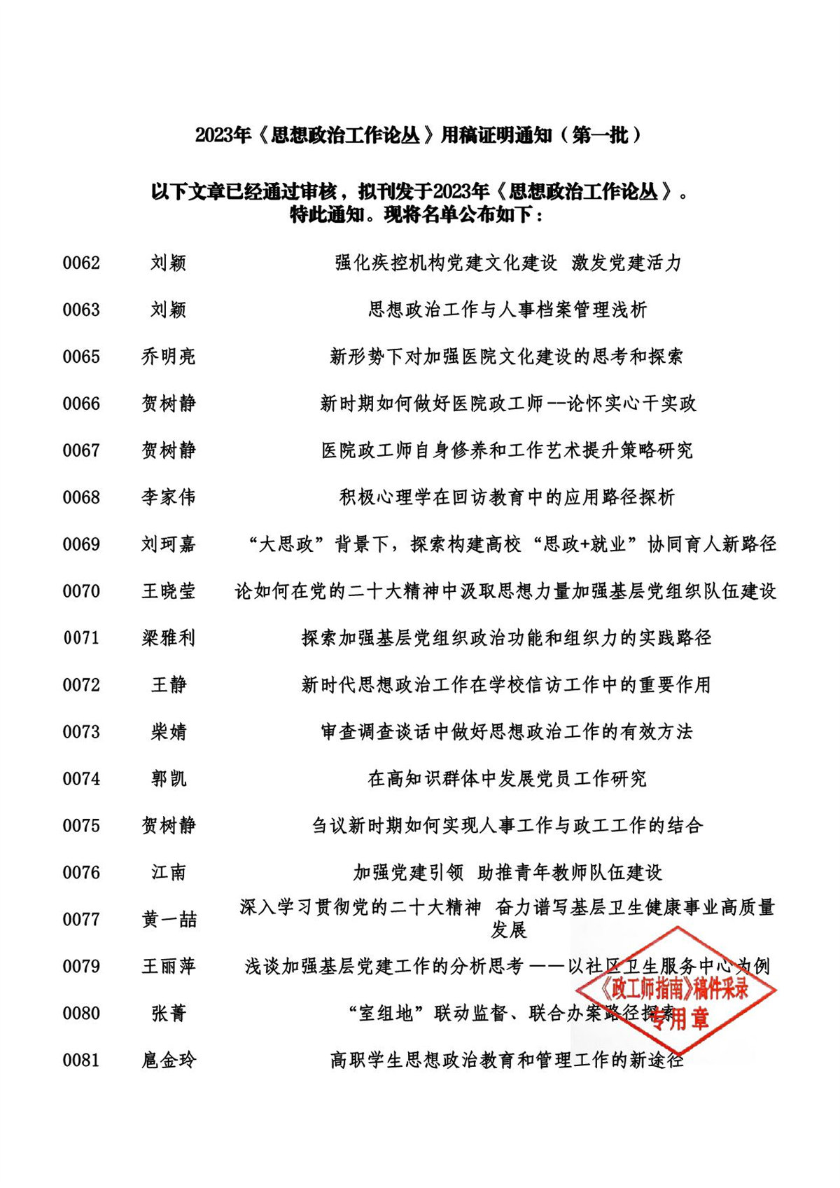 2023年《思想政治工作论丛》用稿证明通知(第一批)_04