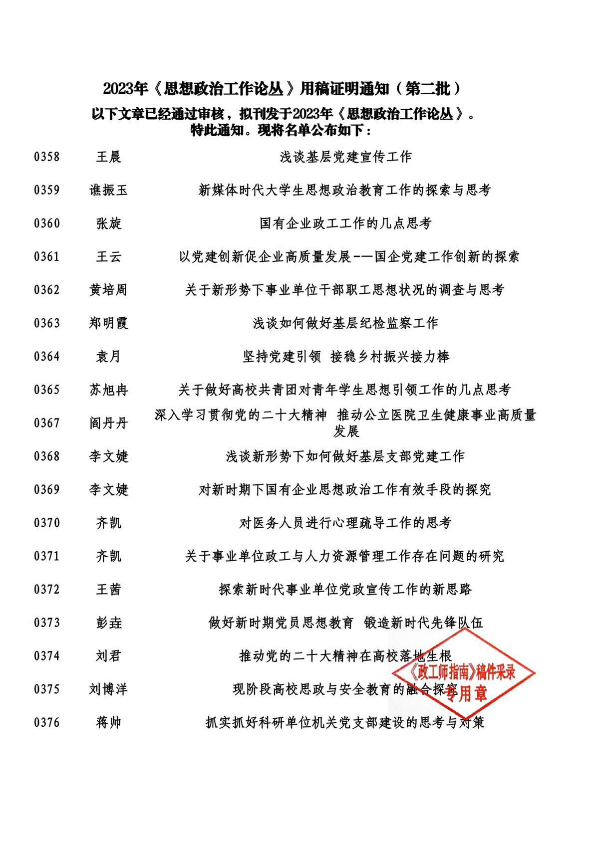 2023年《思想政治工作论丛》用稿证明通知(第二批)09