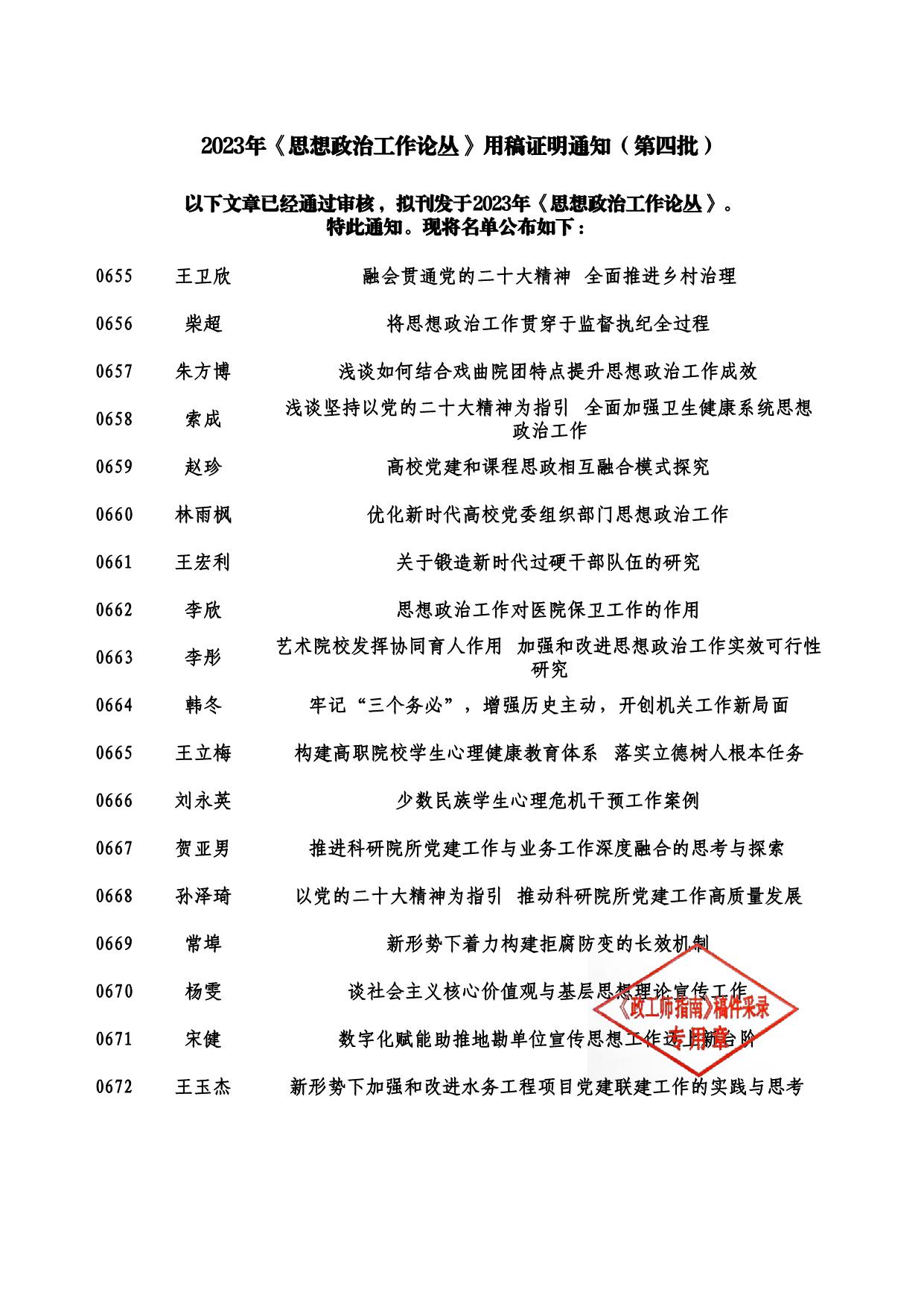 2023年《思想政治工作论丛》用稿证明通知(第四批)_01
