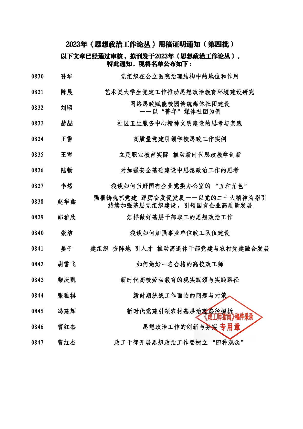 2023年《思想政治工作论丛》用稿证明通知(第四批)_10