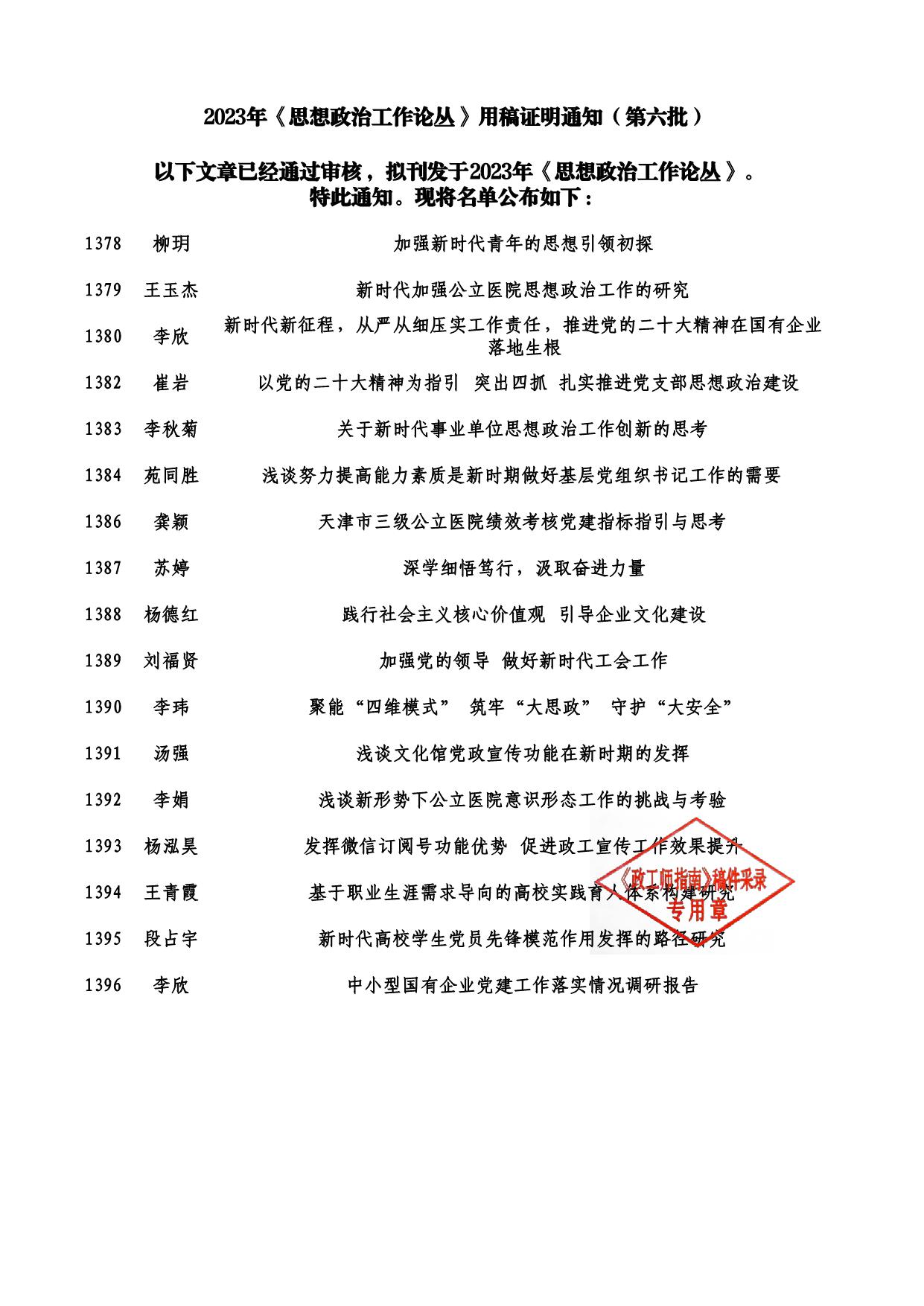 2023年《思想政治工作论丛》用稿证明通知(第六批)_11