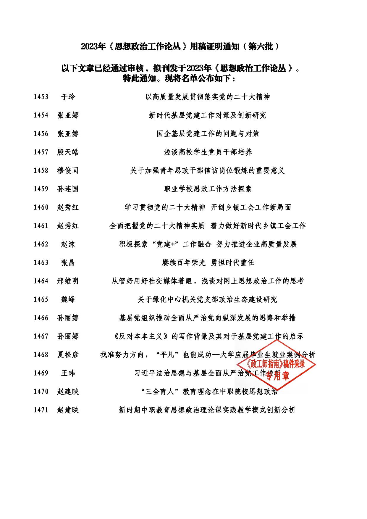 2023年《思想政治工作论丛》用稿证明通知(第六批)_15