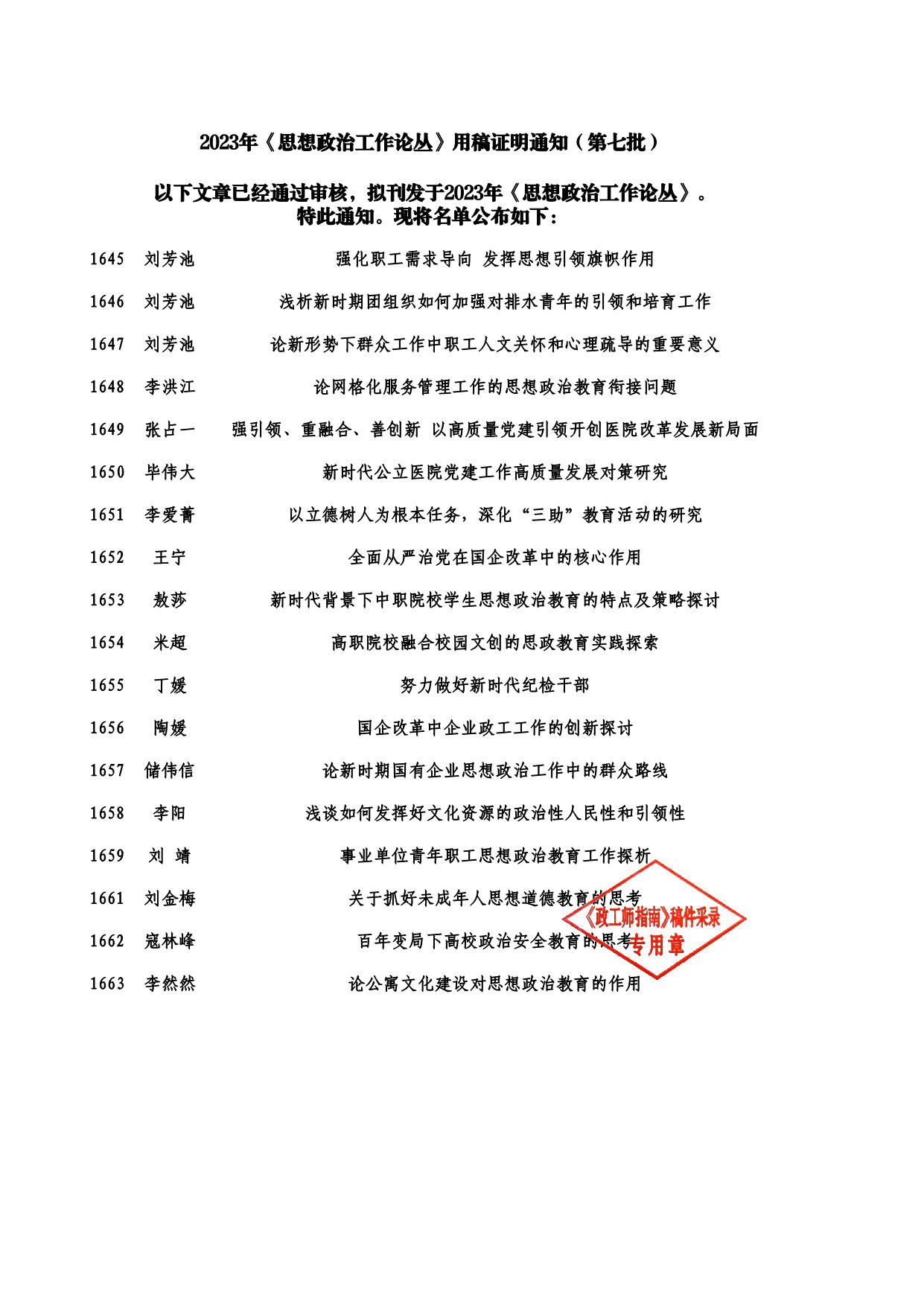 2023年《思想政治工作论丛》用稿证明通知(第七批)_09